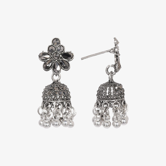 Elevate your ethnic style with this stunning pair of oxidized silver jhumka earrings, designed for women who love to blend tradition with elegance. Crafted with intricate detailing, these earrings feature a classic dome shape with antique oxidized finish, making them a timeless addition to your jewelry collection. The fine carvings...